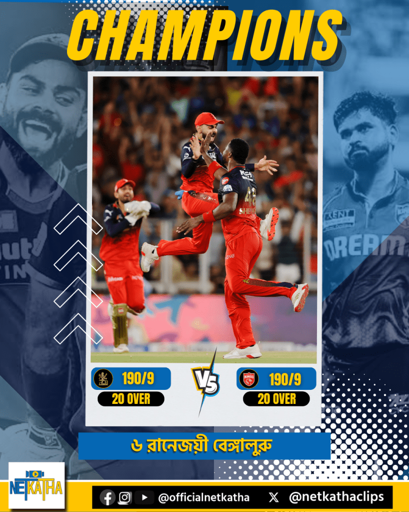 নিজের ক্রিকেট জীবনে নিজের সেরাটা দিয়ে এসেছেন বলেই হয়তো কেরিয়ারে সব কিছু পেয়েছেন বিরাট কোহলি। বিশ্বকাপ, চ্যাম্পিয়নস ট্রফির পর আজ আবার তিনি চ্যাম্পিয়ন। আইপিএল ২০২৫ এ ফাইনালে জয়ী রয়্যাল চ্যালেঞ্জার্স বেঙ্গালুরু।