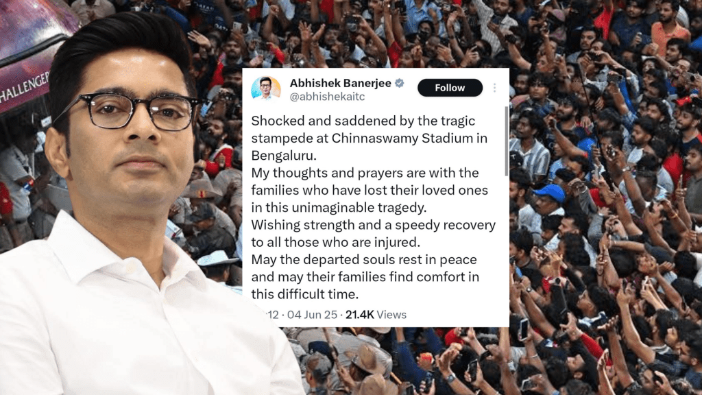 বেঙ্গালুরুতে পদপিষ্ট হয়ে মৃত্যুর ঘটনায় শোকপ্রকাশ করেছেন অভিষেক বন্দ্যোপাধ্যায়। এক্স হ্যান্ডেলেও সে কথা জানিয়েছেন তিনি।