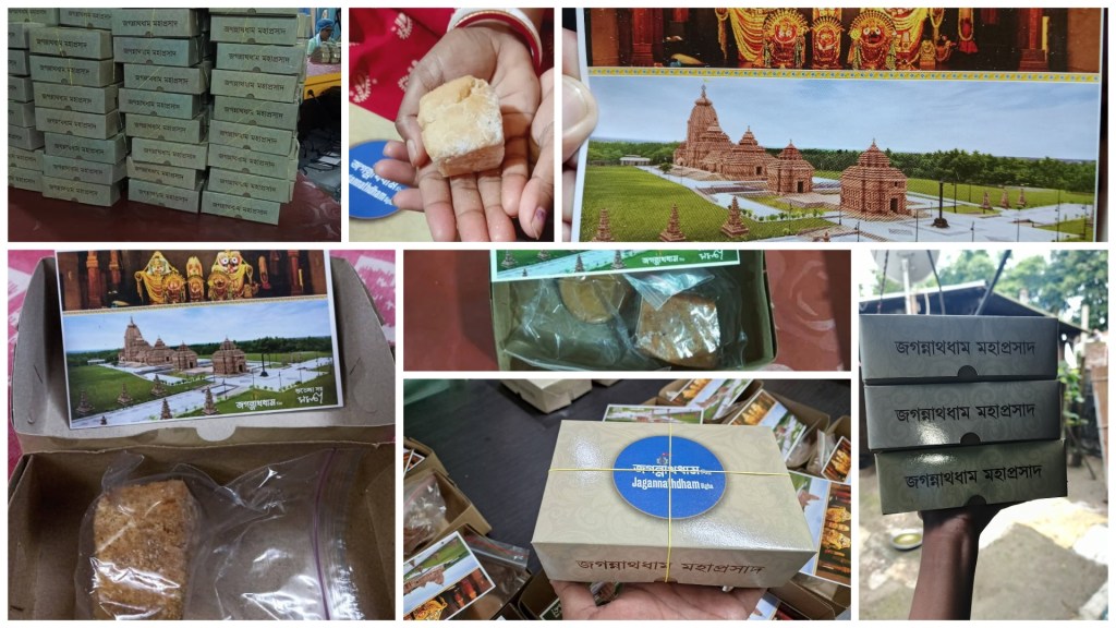 যে ছবি এখন সমাজ মাধ্যমে ভাইরাল। চেয়ারম্যান বাবলু কর। তিনি বলেন, “মুখ্যমন্ত্রী জাতি ধর্ম নির্বিশেষে সবার কাছে প্রসাদ পৌঁছে দেওয়ার কথা বলেছেন। আমরা সকলের কাছে প্রসাদ পৌঁছে দিচ্ছি। যারা সমাজমাধ্যমে প্রসাদ নিয়ে প্রশ্ন তুলে কুৎসা ছড়াচ্ছেন, তাঁরা জনবিচ্ছিন্ন হবেন। তবে কেউ না নিতে চাইলে আমরা জোর করে প্রসাদ দিচ্ছি না।বিজেপির জেলা সভাপতি মিঠু দাস বলেন, “দেখুন স্থানীয়ভাবে কেউ বাড়িতে এলে তো আর অসৌজন্যতা প্রকাশ করা যায় না। সেই কারণে হয়তো আমাদের কেউ কেউ মিষ্টির প্যাকেট গ্রহণ করেছেন। এতে আপত্তির কী আছে। তবে মিষ্টির দোকানে তৈরি করে মিষ্টিকে প্রসাদ হিসেবে চালিয়ে দিচ্ছে তৃণমূল।’’